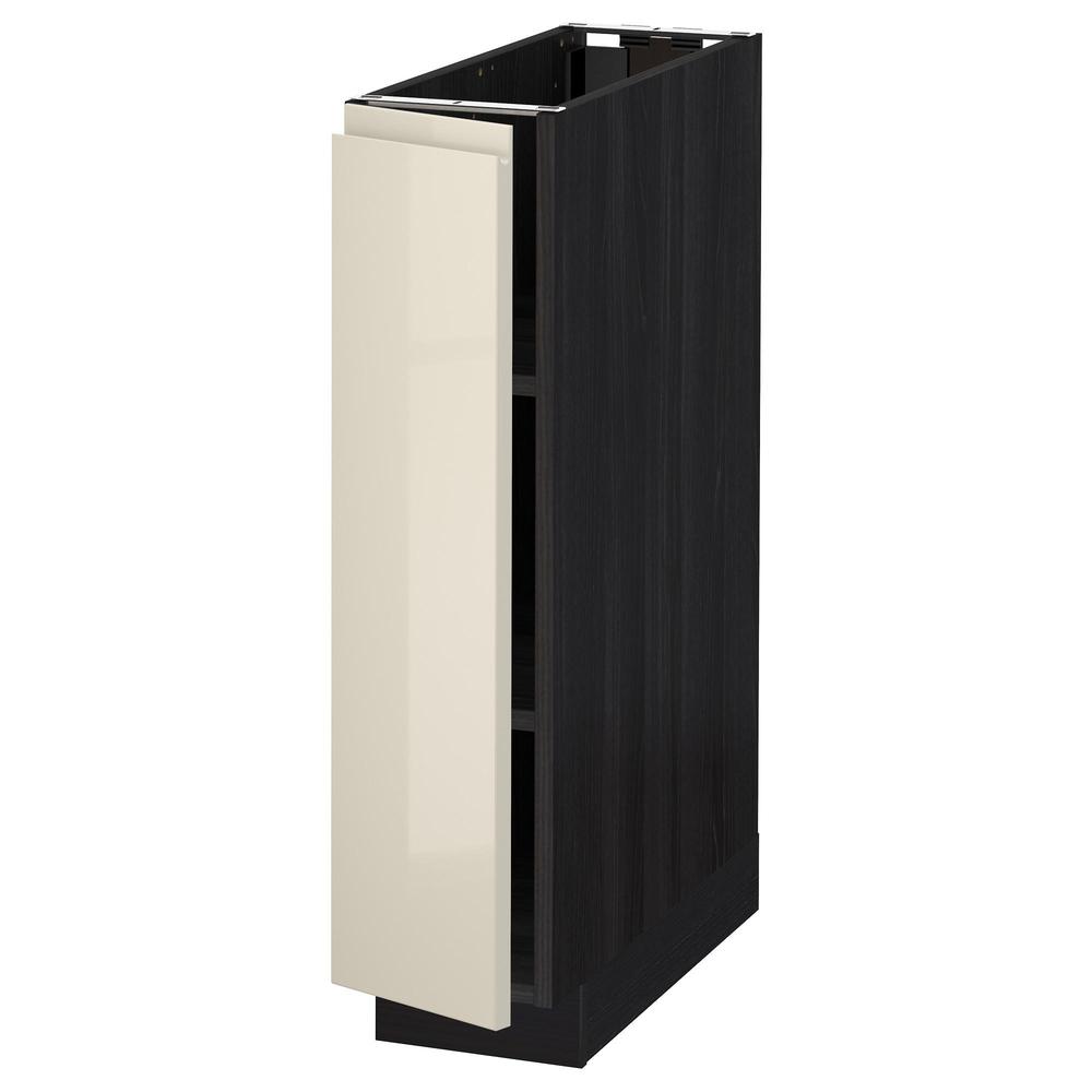 МЕТОД Напольный шкаф с полками - под дерево черный, Воксторп глянцевый светло-бежевый, 20x60 см