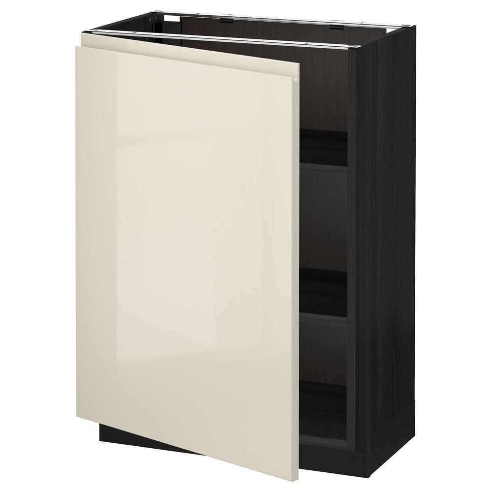 МЕТОД Напольный шкаф с полками - под дерево черный, Воксторп глянцевый светло-бежевый, 60x37 см
