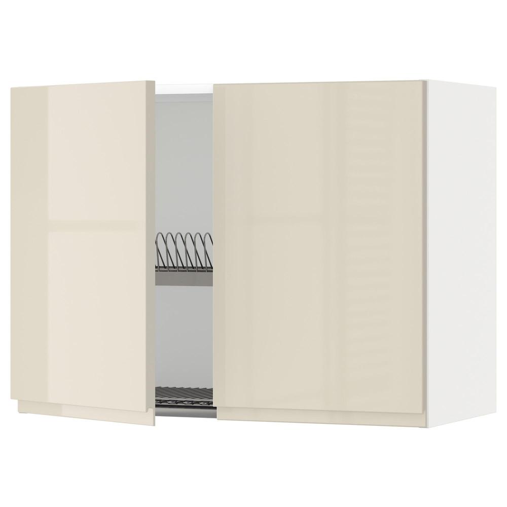 МЕТОД Навесной шкаф с посуд суш/2 дврц - белый, Воксторп глянцевый светло-бежевый, 80x60 см