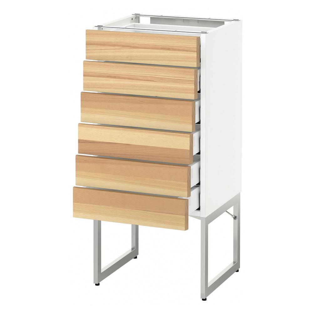 МЕТОД / МАКСИМЕРА Напольн шкаф 6фронт пнл/6 низ ящ - белый, Торхэмн естественный ясень, 40x37x60 см