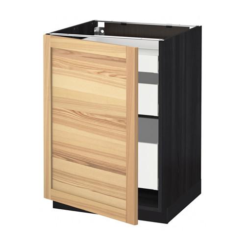 МЕТОД / МАКСИМЕРА Напольный шкаф с 1двр/3ящ - под дерево черный, Торхэмн естественный ясень, 60x60 см