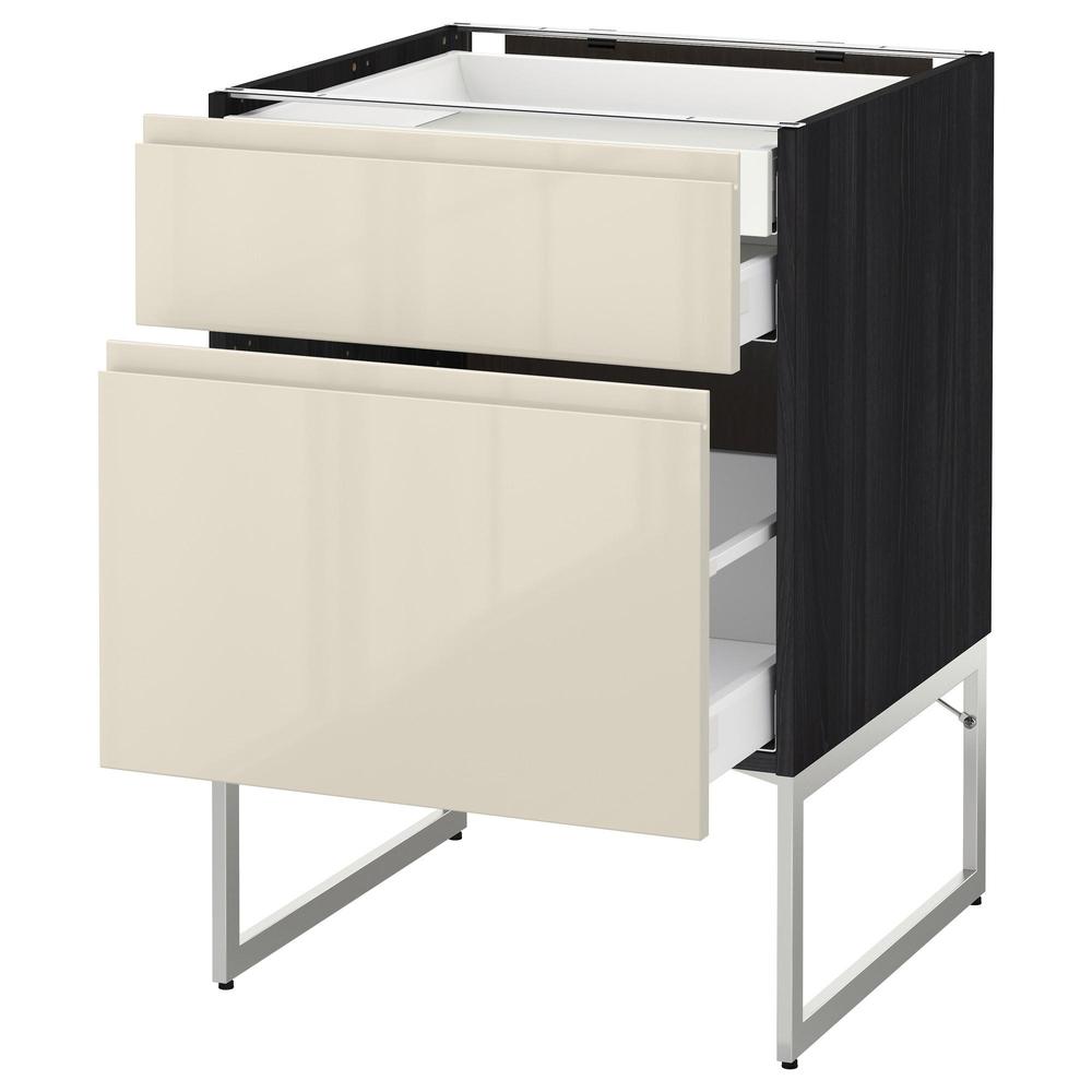 МЕТОД / МАКСИМЕРА Напольн шкаф 2фронт пнл/2низ/1вс ящ - под дерево черный, Воксторп глянцевый светло-бежевый, 60x60x60 см