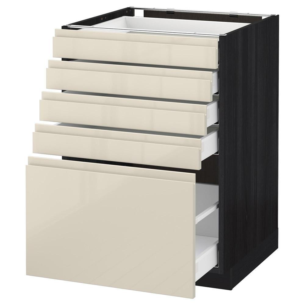 МЕТОД / МАКСИМЕРА Напольный шкаф с 5 ящиками - под дерево черный, Воксторп глянцевый светло-бежевый, 60x60 см