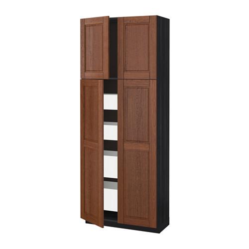 МЕТОД / МАКСИМЕРА Высокий шкаф/4дверцы/4ящика - под дерево черный, Филипстад коричневый