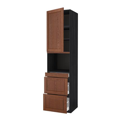 МЕТОД / МАКСИМЕРА Высокий шкаф д/СВЧ/дверца/3ящика - под дерево черный, Филипстад коричневый, 60x60x240 см