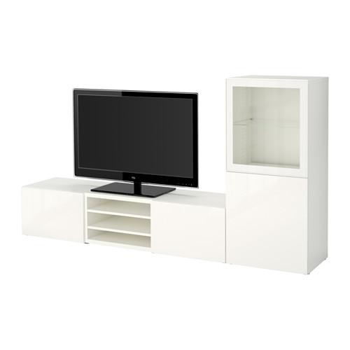БЕСТО Шкаф для ТВ, комбин/стеклян дверцы - белый/Сельсвикен глянцевый/белый прозрачное стекло, направляющие ящика,нажимные