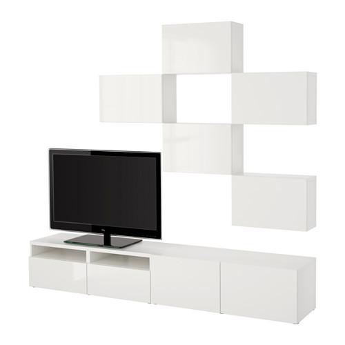 БЕСТО Шкаф для ТВ, комбинация - белый/Сельсвикен глянцевый/белый, направляющие ящика, плавно закр