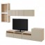 БЕСТО Шкаф для ТВ, комбин/стеклян дверцы - под беленый дуб/Сельсвикен глянцевый/бежевый прозрачное стекло, направляющие ящика,нажимные