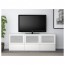 БЕСТО Тумба под ТВ, с дверцами и ящиками - белый/Сельсвикен глянцевый/белый матовое стекло, направляющие ящика,нажимные