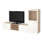 БЕСТО Шкаф для ТВ, комбин/стеклян дверцы - под беленый дуб/Сельсвикен глянцевый/белый прозрачное стекло, направляющие ящика, плавно закр