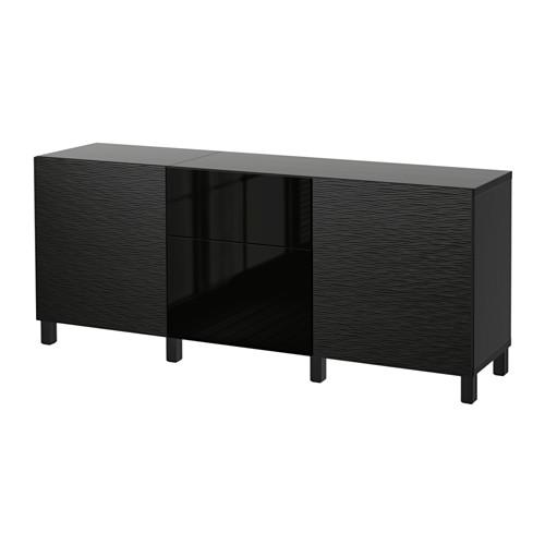 БЕСТО Комбинация для хранения с ящиками - Лаксвикен черный/Сельсвикен глянцевый/черный, направляющие ящика, плавно закр