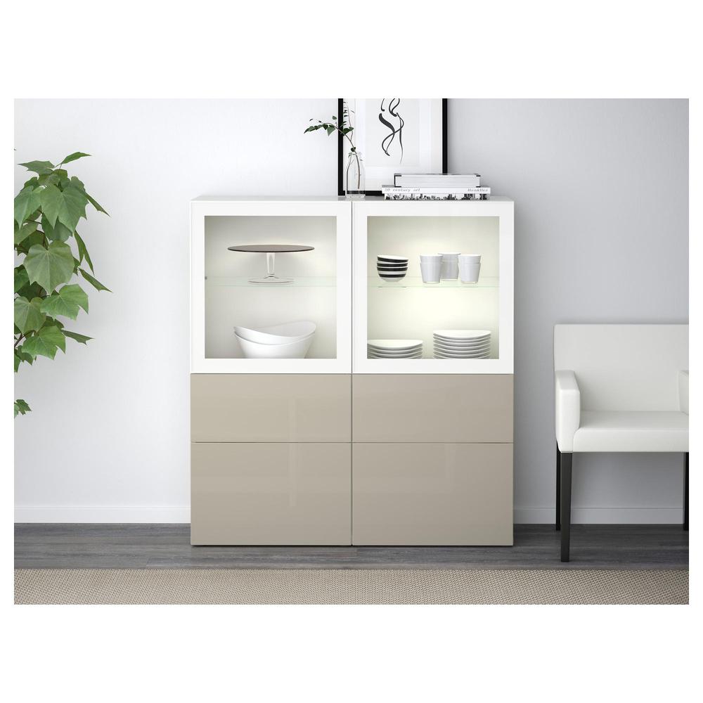БЕСТО Комбинация д/хранения+стекл дверц - белый/Сельсвикен глянцевый/бежевый прозрачное стекло, направляющие ящика,нажимные 0.0/5 оценка (0 голосов)