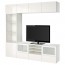 БЕСТО Шкаф для ТВ, комбин/стеклян дверцы - белый/Сельсвикен глянцевый/белый матовое стекло, направляющие ящика, плавно закр