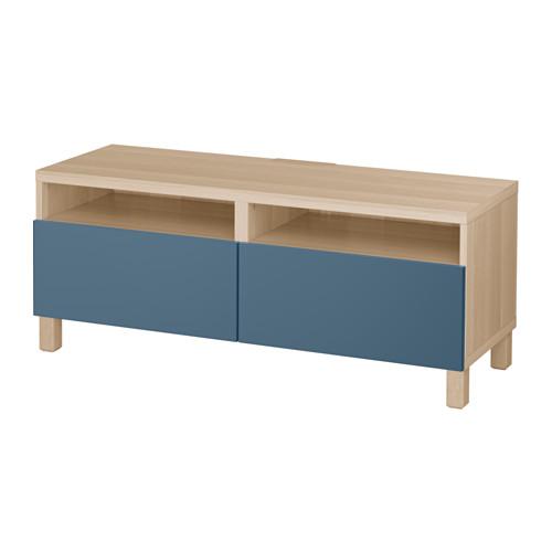 БЕСТО Тумба д/ТВ с ящиками - под беленый дуб/Вальвикен темно-синий, направляющие ящика,нажимные