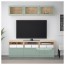 БЕСТО Шкаф для ТВ, комбин/стеклян дверцы - под беленый дуб Сельсвикен/глянцевый/серо-зеленый светлый прозрачное стекло, направляющие ящика, плавно закр