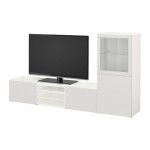БЕСТО Шкаф для ТВ, комбин/стеклян дверцы - белый/Лаппвикен светло-серый прозрачное стекло, направляющие ящика,нажимные