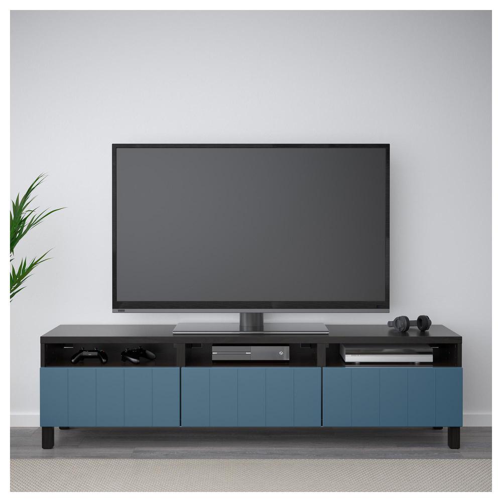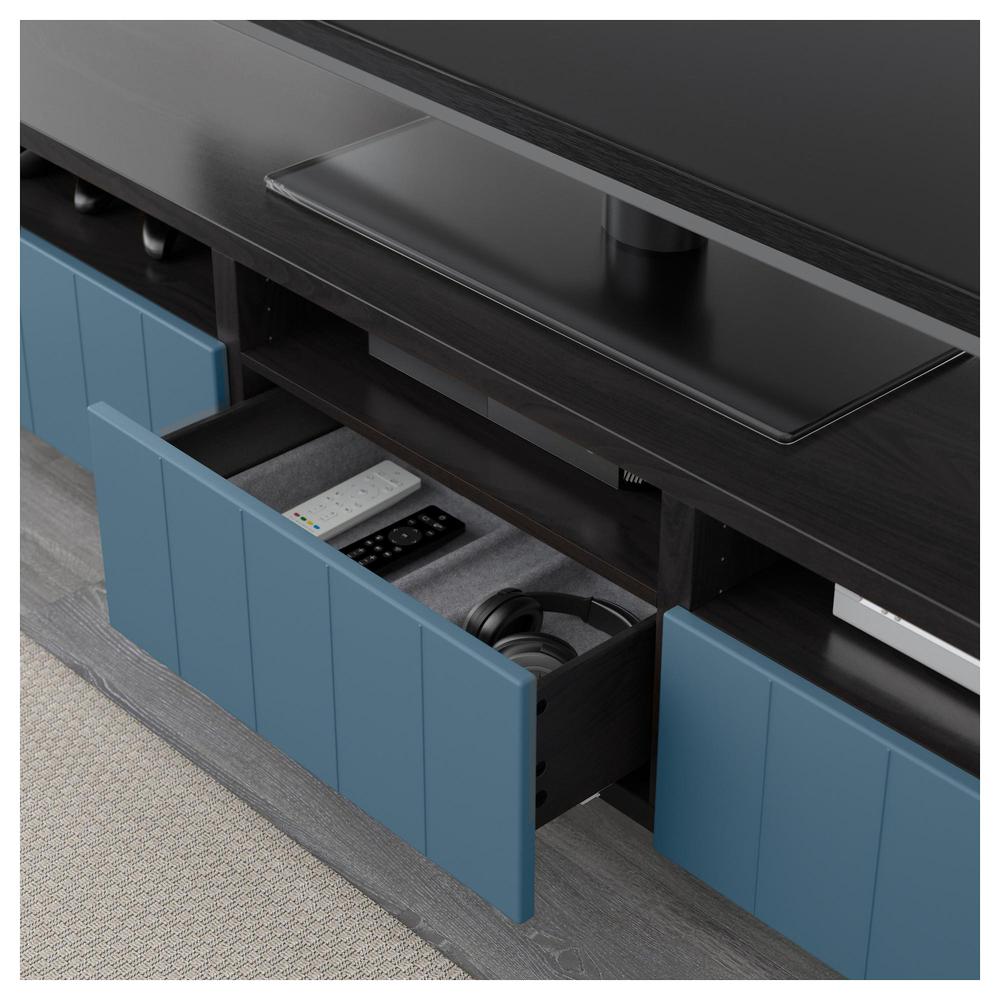БЕСТО Тумба д/ТВ с ящиками - черно-коричневый/Халлставик темно-синий, направляющие ящика,нажимные