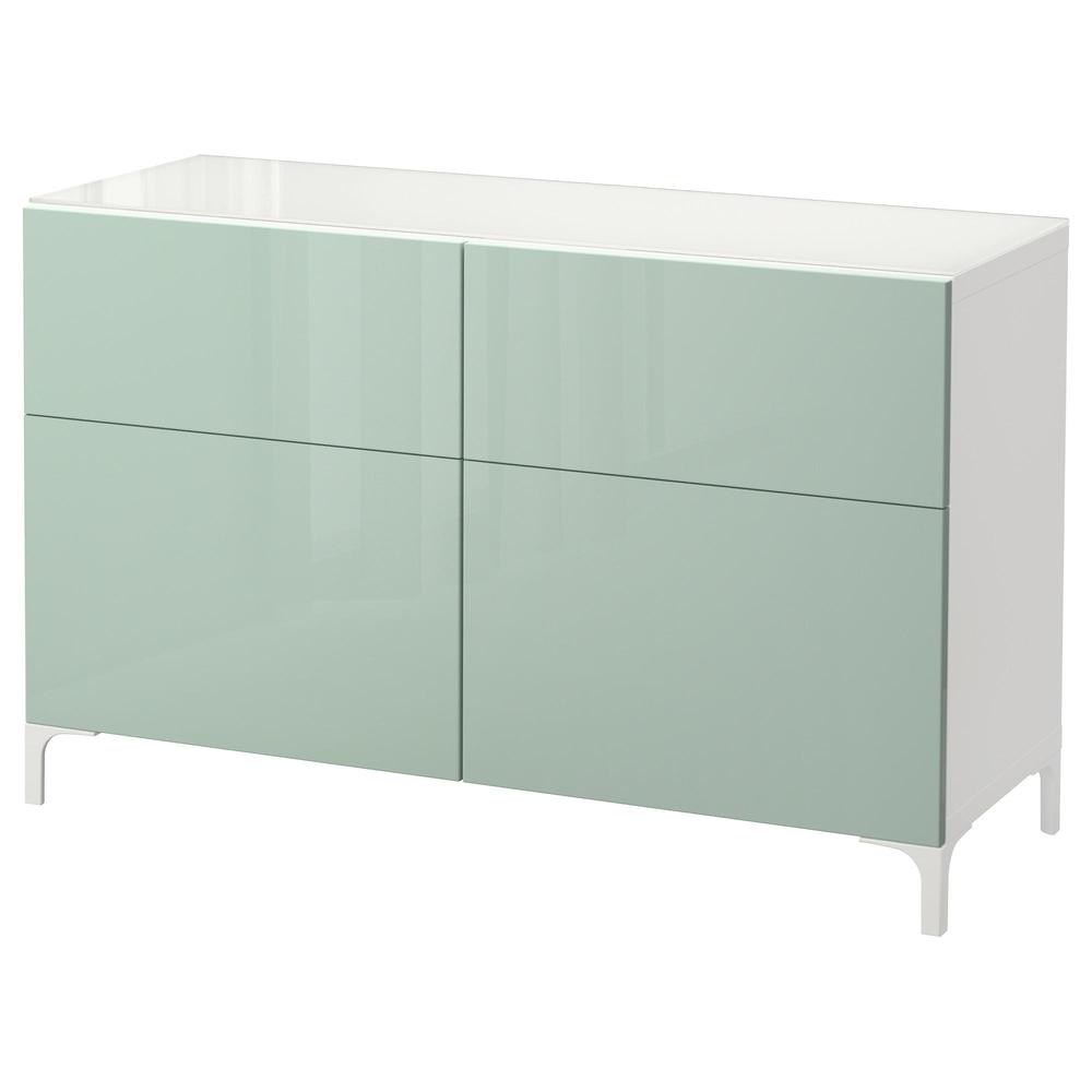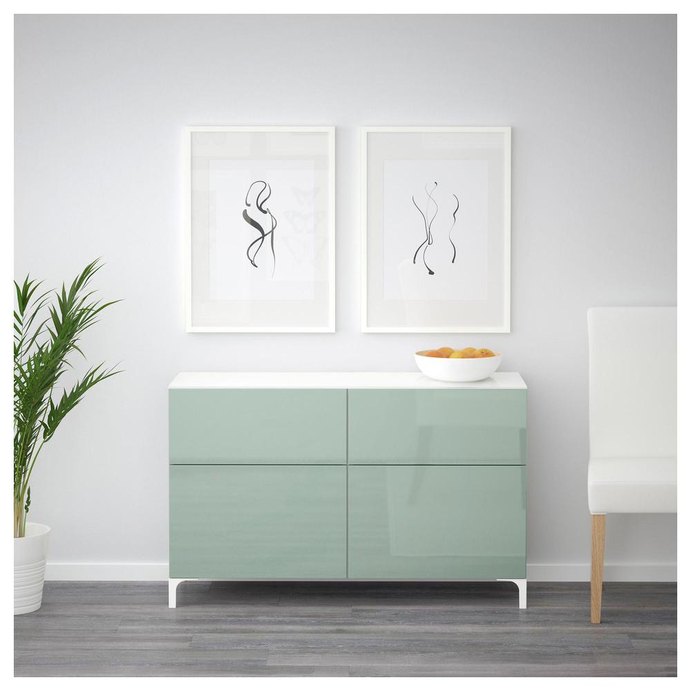 БЕСТО Комбинация для хранения с ящиками - белый/Сельсвикен глянцевый/серо-зеленый светлый, направляющие ящика,нажимные