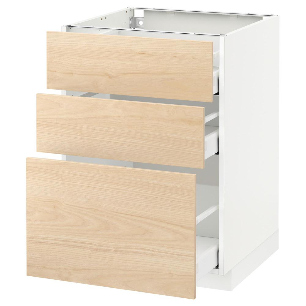 МЕТОД / МАКСИМЕРА Напольный шкаф с 3 ящиками - белый, Аскерсунд под светлый ясень, 60x60 см