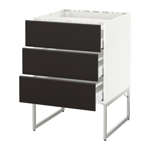 МЕТОД / МАКСИМЕРА Напольн шкаф/3фронт пнл/3ящика - белый, Кунгсбакка антрацит, 60x60x60 см