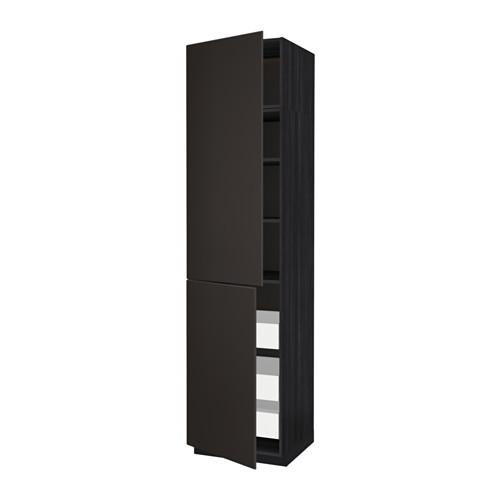 МЕТОД / МАКСИМЕРА Высокий шкаф+полки/3 ящика/2 дверцы - под дерево черный, Кунгсбакка антрацит, 60x60x240 см