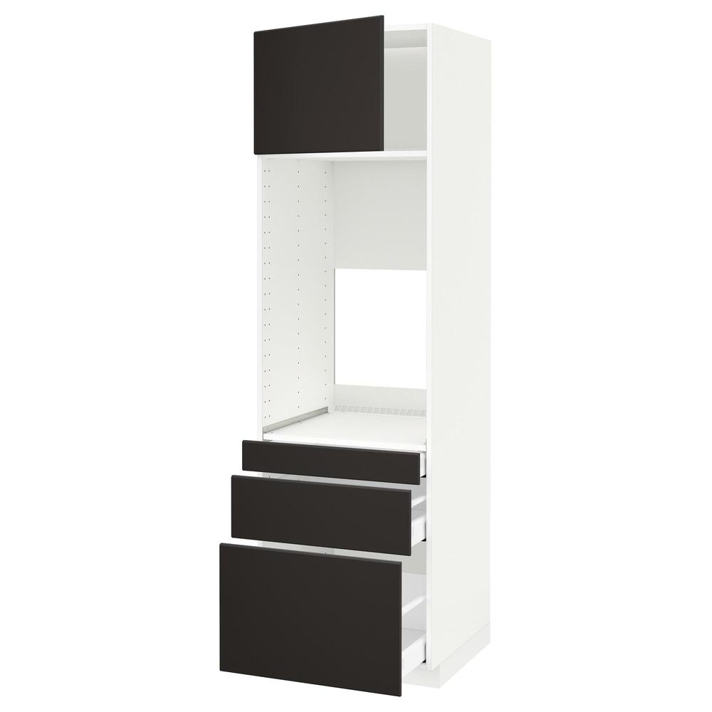 МЕТОД / МАКСИМЕРА Выс шкаф д/двойн духовки/3ящ/дверца - белый, Кунгсбакка антрацит, 60x60x200 см