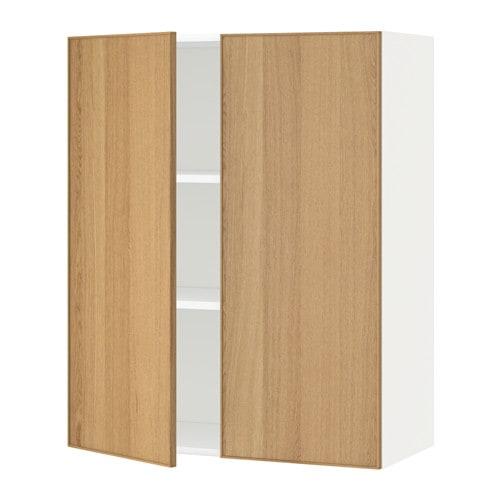 МЕТОД Навесной шкаф с полками/2дверцы - белый, Экестад дуб, 80x100 см