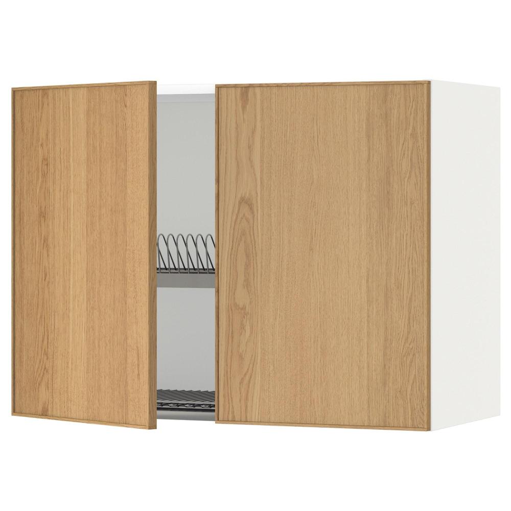 МЕТОД Навесной шкаф с посуд суш/2 дврц - белый, Экестад дуб, 80x60 см