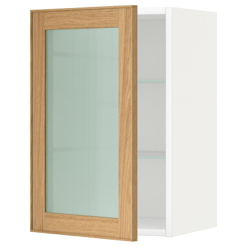 МЕТОД Навесной шкаф с полками/стекл дв - белый, Экестад дуб, 40x60 см