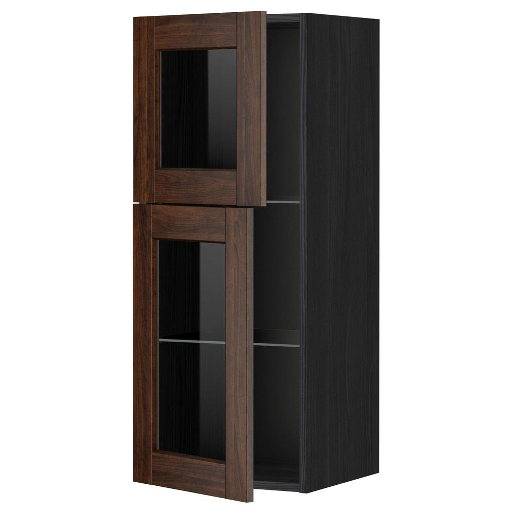 МЕТОД Навесной шкаф с полками/2 стекл дв - под дерево черный, Эдсерум под дерево коричневый