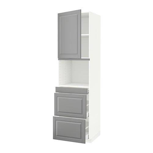 МЕТОД / МАКСИМЕРА Высокий шкаф д/СВЧ/дверца/3ящика - белый, Будбин серый, 60x60x220 см
