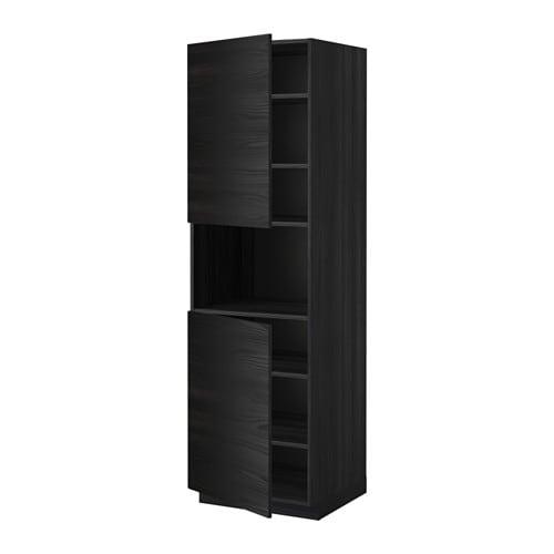 МЕТОД Выс шкаф д/СВЧ/2 дверцы/полки - под дерево черный, Тингсрид под дерево черный, 60x60x200 см