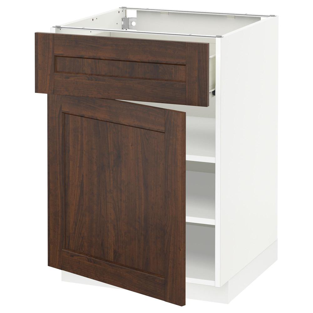 МЕТОД / ФОРВАРА Напольный шкаф с ящиком/дверью - белый, Эдсерум под дерево коричневый, 60x60 см