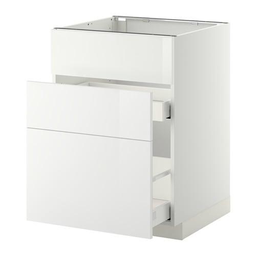 МЕТОД / МАКСИМЕРА Напольн шк п-мойку+3фрнт пнл/2ящ - белый, Рингульт глянцевый белый, 60x60 см