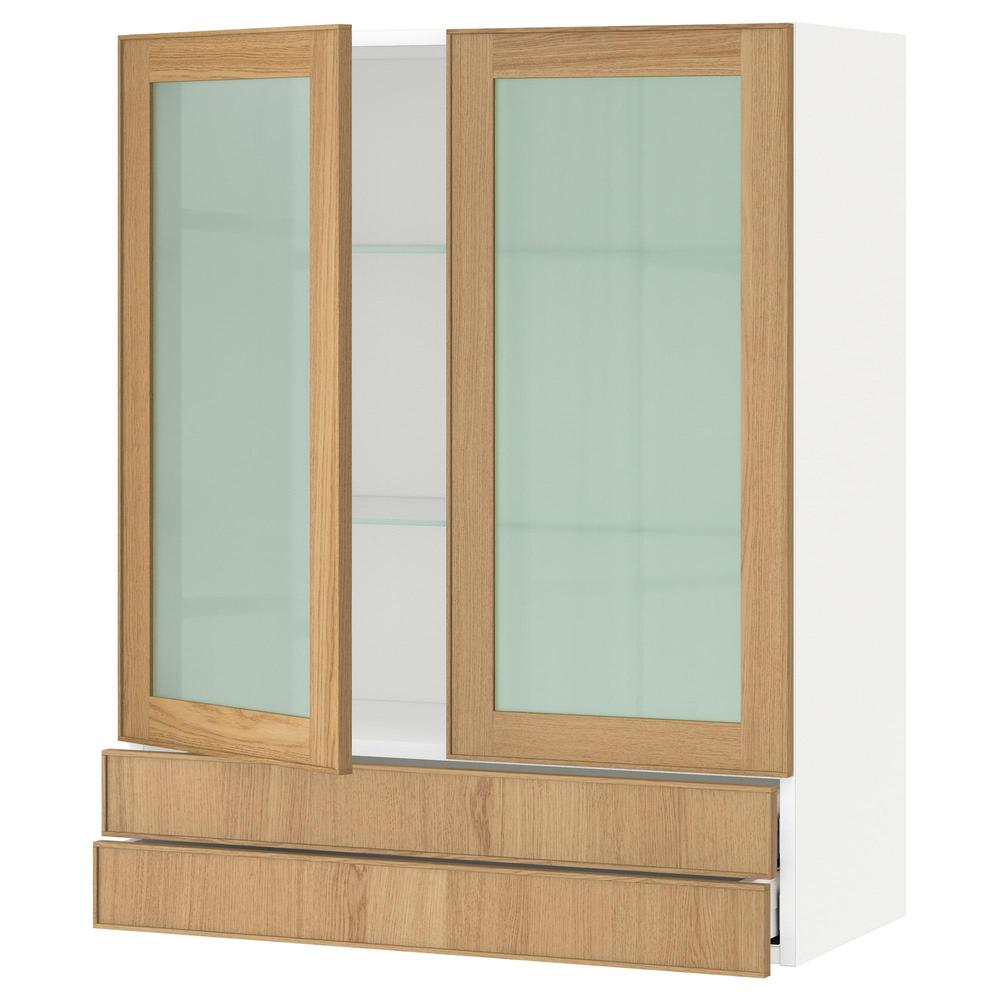 МЕТОД / МАКСИМЕРА Навесной шкаф/2 стек дв/2 ящика - белый, Экестад дуб, 80x100 см