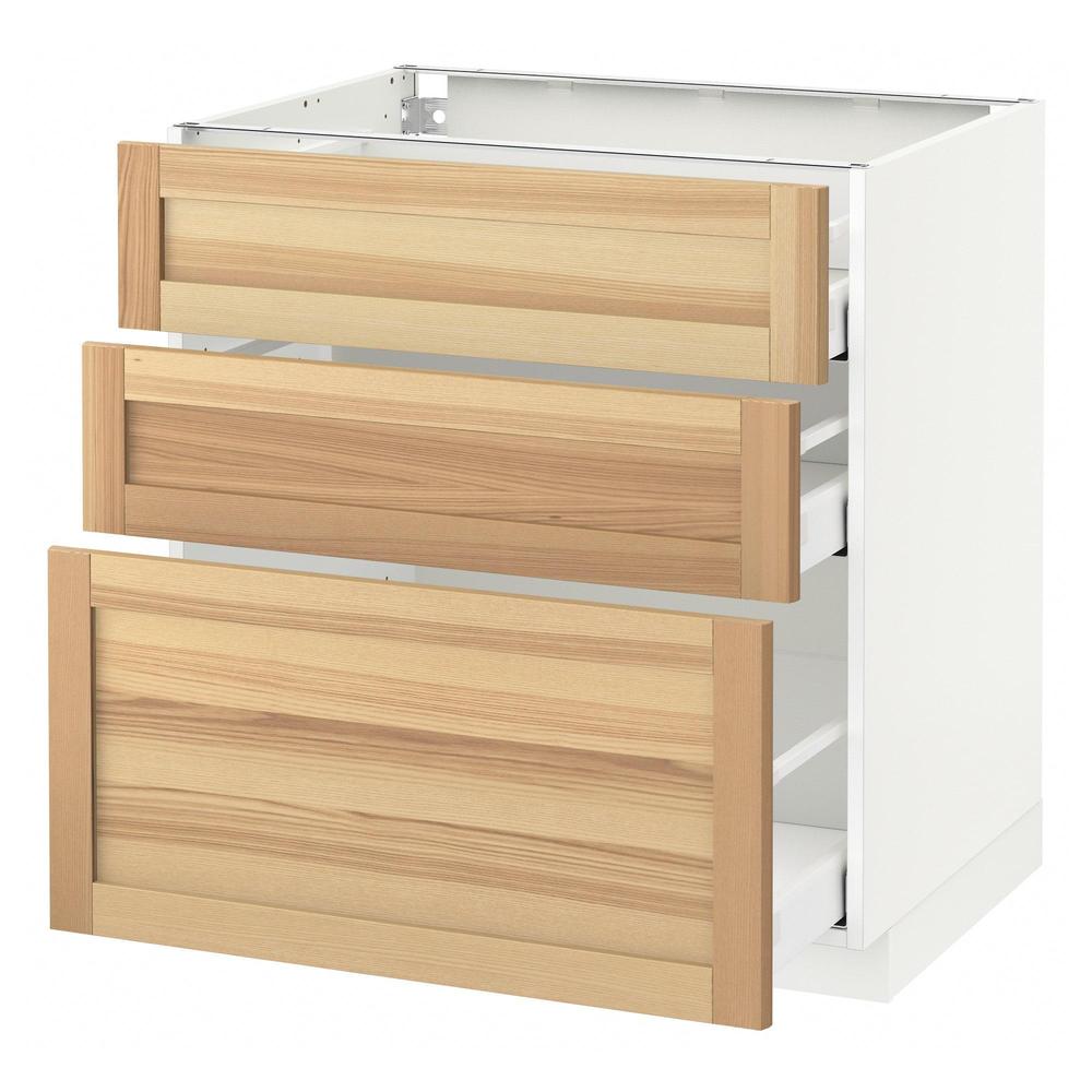 МЕТОД / МАКСИМЕРА Напольный шкаф с 3 ящиками - белый, Торхэмн естественный ясень, 80x60 см