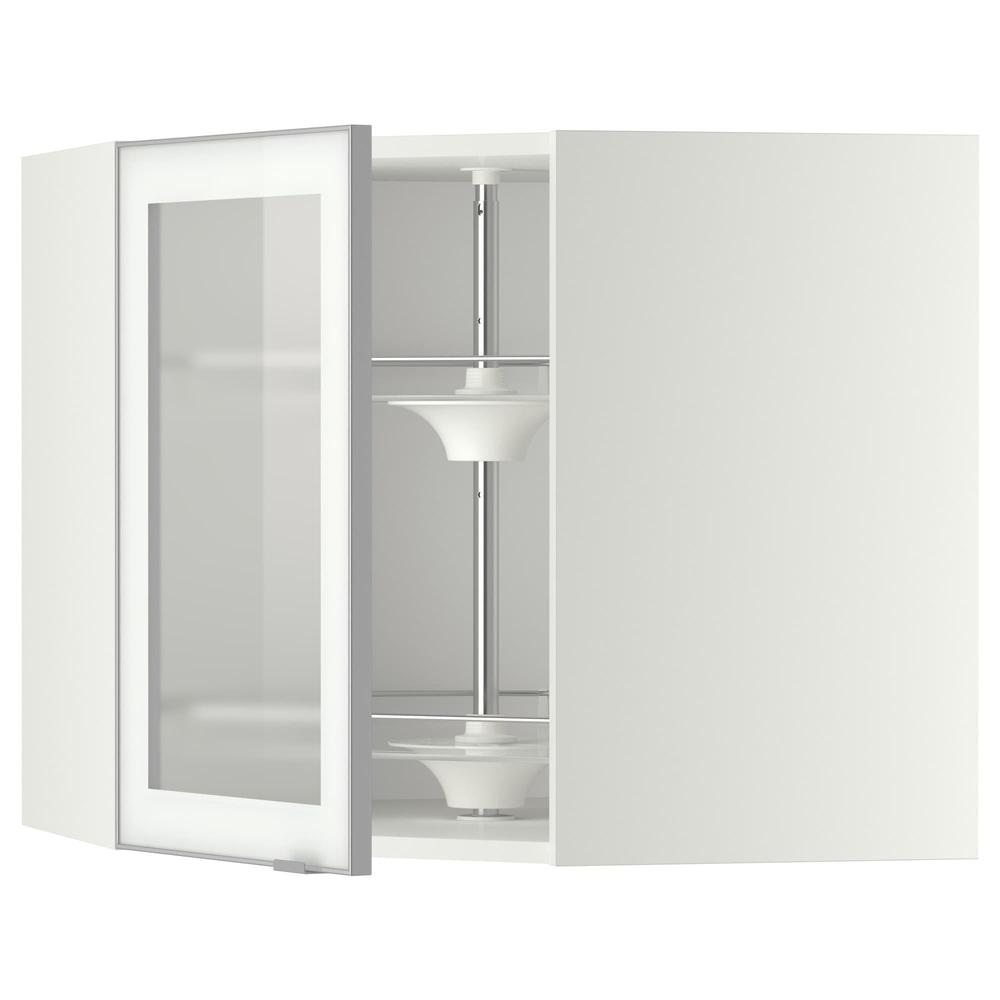МЕТОД Углов навесн шк с врщ скц/сткл дв - белый, Ютис матовое стекло/алюминий, 68x60 см