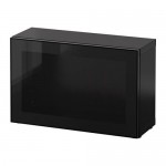 БЕСТО Стеллаж со стеклянн дверью - черно-коричневый/Глассвик черный/прозрачное стекло