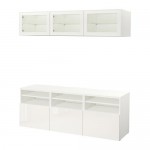 БЕСТО Шкаф для ТВ, комбин/стеклян дверцы - белый/Сельсвикен глянцевый/белый прозрачное стекло, направляющие ящика, плавно закр