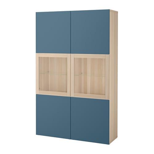 БЕСТО Комбинация д/хранения+стекл дверц - под беленый дуб Вальвикен/темно-синий прозрачное стекло