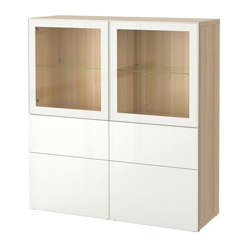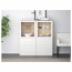 БЕСТО Комбинация д/хранения+стекл дверц - под беленый дуб/Сельсвикен глянцевый/белый прозрачное стекло, направляющие ящика, плавно закр