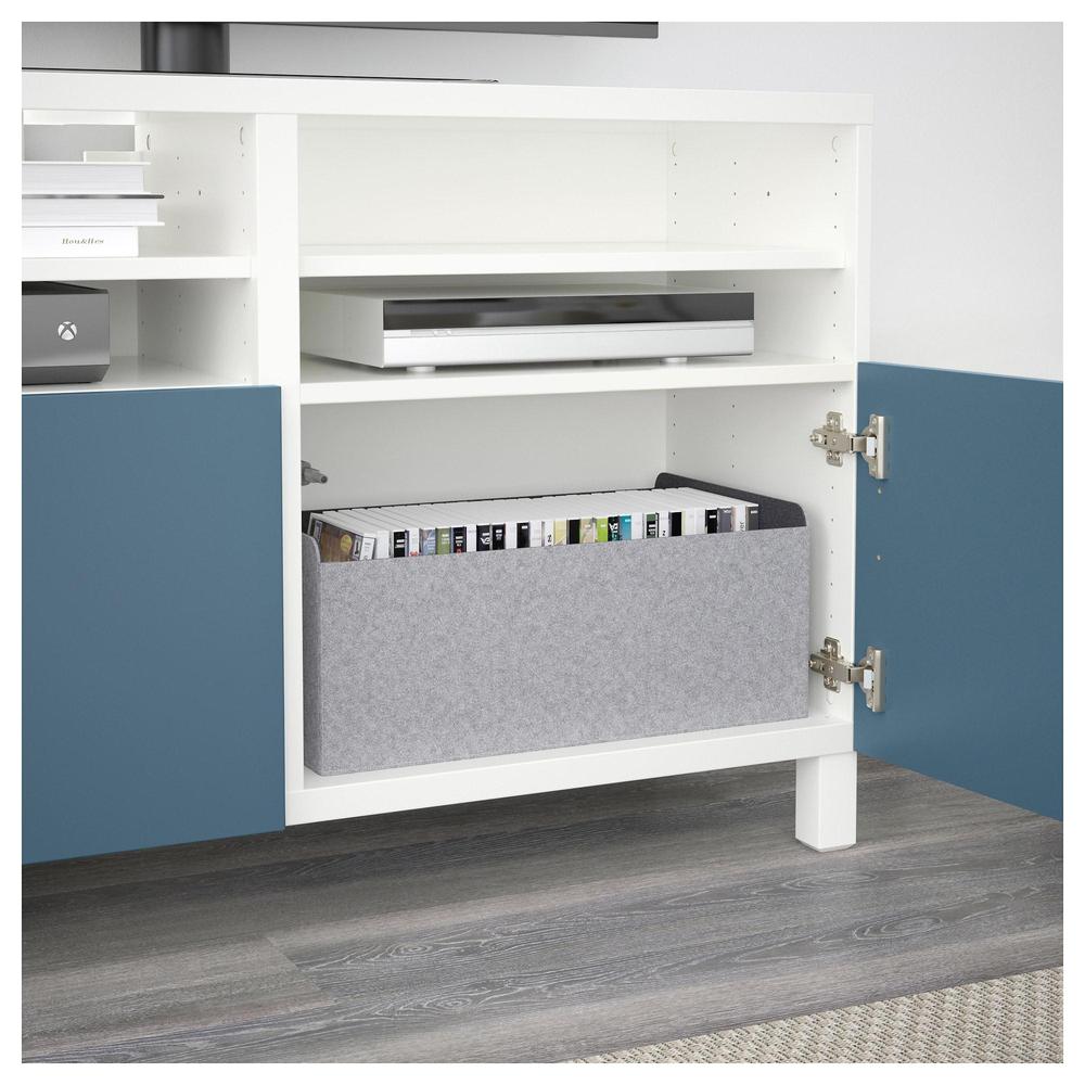 БЕСТО Тумба под ТВ, с дверцами - белый/Вальвикен темно-синий