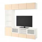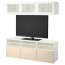 БЕСТО Шкаф для ТВ, комбин/стеклян дверцы - белый Инвикен/ясеневый шпон прозрачное стекло, направляющие ящика,нажимные