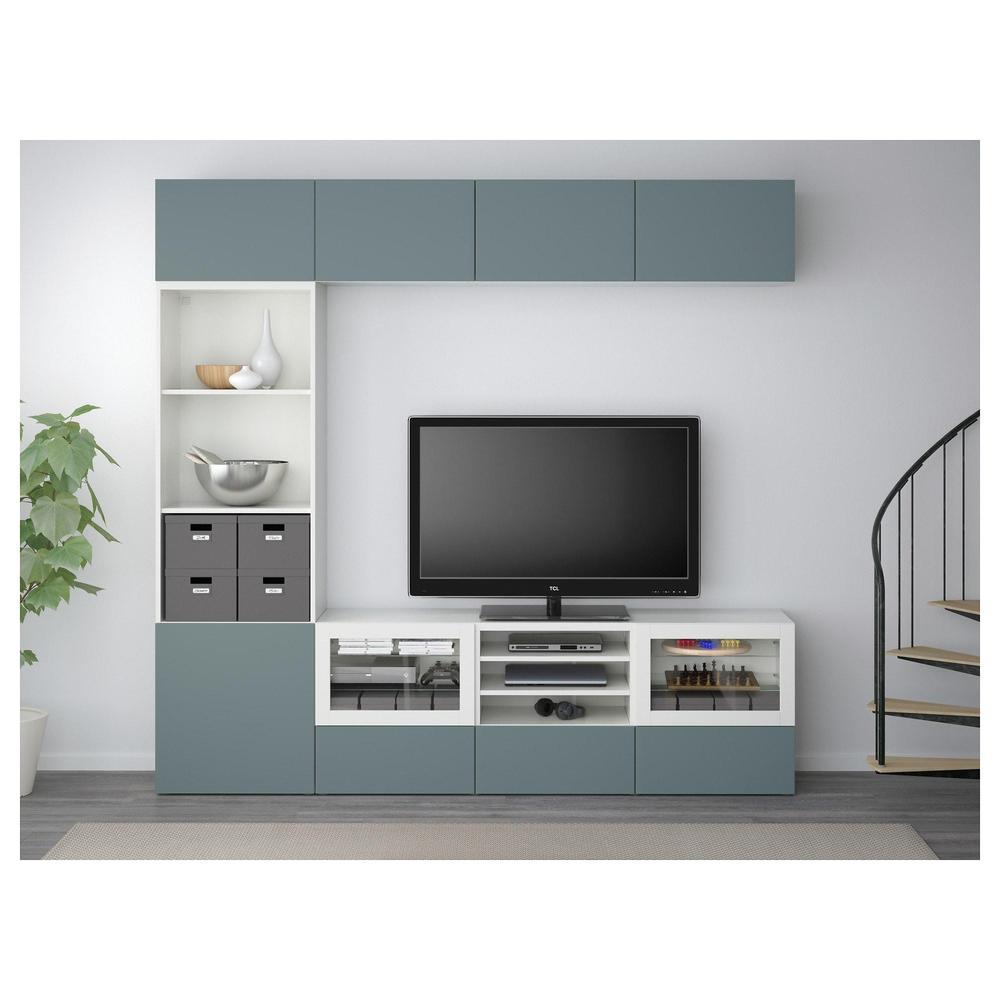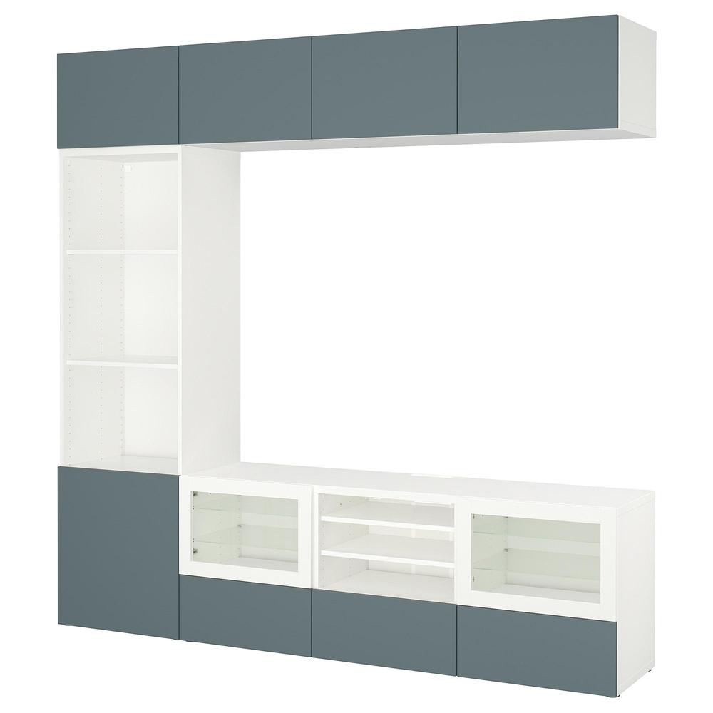 БЕСТО Шкаф для ТВ, комбин/стеклян дверцы - белый/Вальвикен серо-бирюзовый, прозрачное стекло, направляющие ящика,нажимные 0.0/5 оценка (0 голосов)