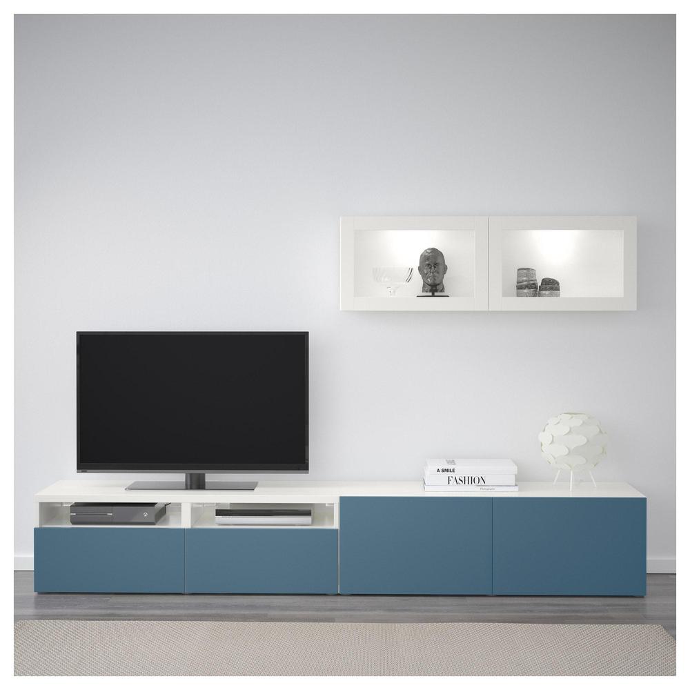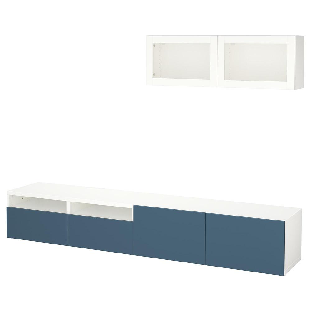 БЕСТО Шкаф для ТВ, комбин/стеклян дверцы - белый Вальвикен/темно-синий прозрачное стекло, направляющие ящика, плавно закр