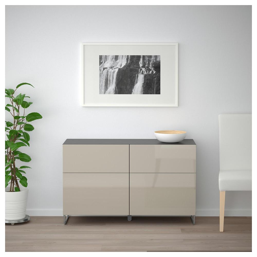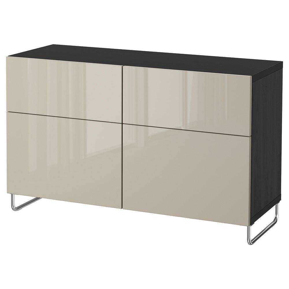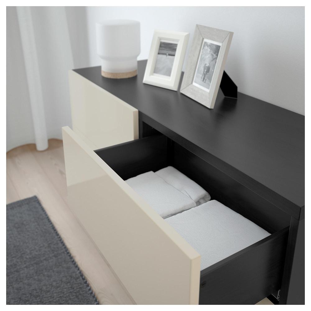 БЕСТО Комб для хран с дверц/ящ - черно-коричневый глянцевый/бежевый, направляющие ящика, плавно закр