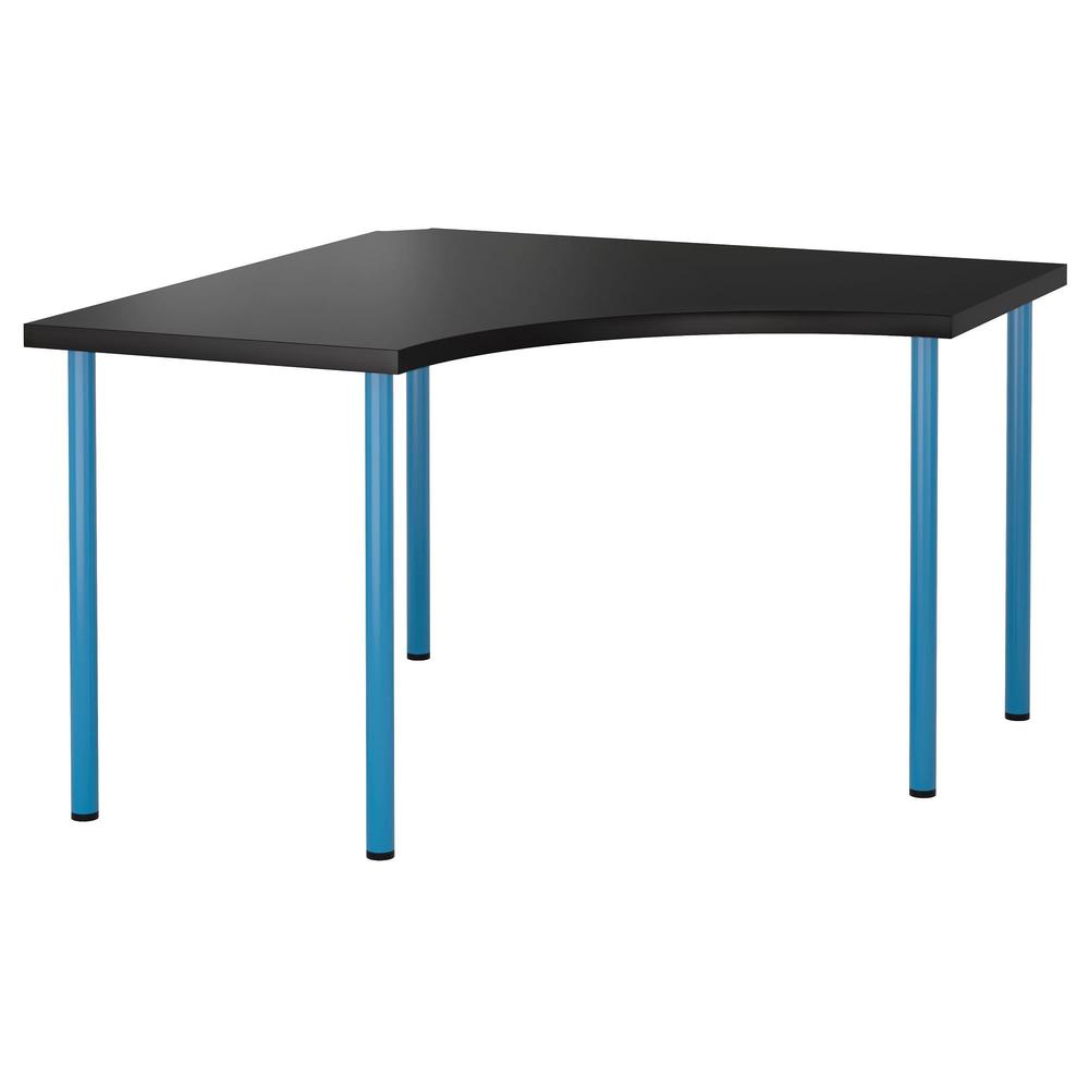 ЛИННМОН / АДИЛЬС Угловой стол - черно-коричневый/синий