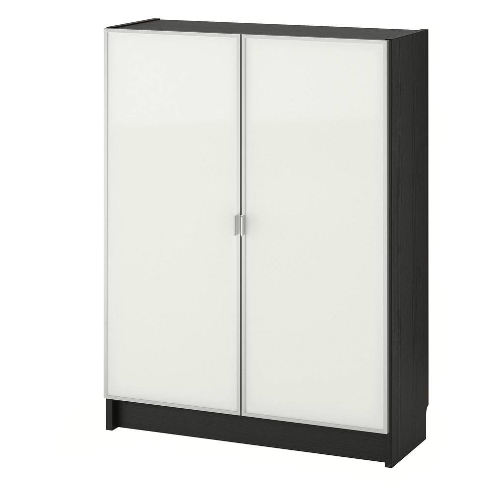БИЛЛИ / МОРЛИДЕН Шкаф книжный со стеклянными дверьми - черно-коричневый/стекло