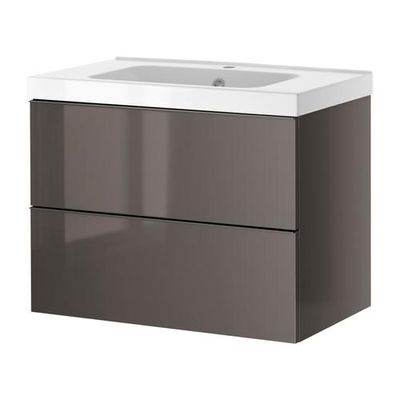 ГОДМОРГОН/ОДЕНСВИК Шкаф для раковины с 2 ящ - глянцевый серый, 60x48x64 см