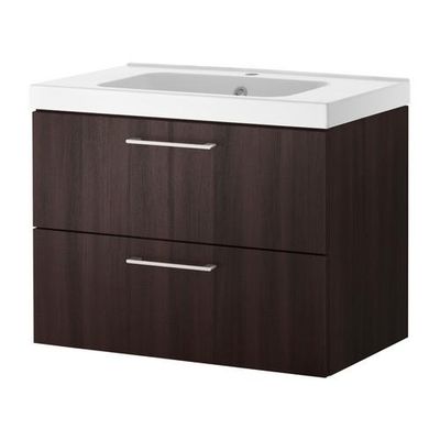 ГОДМОРГОН/ОДЕНСВИК Шкаф для раковины с 2 ящ - черно-коричневый, 80x48x64 см